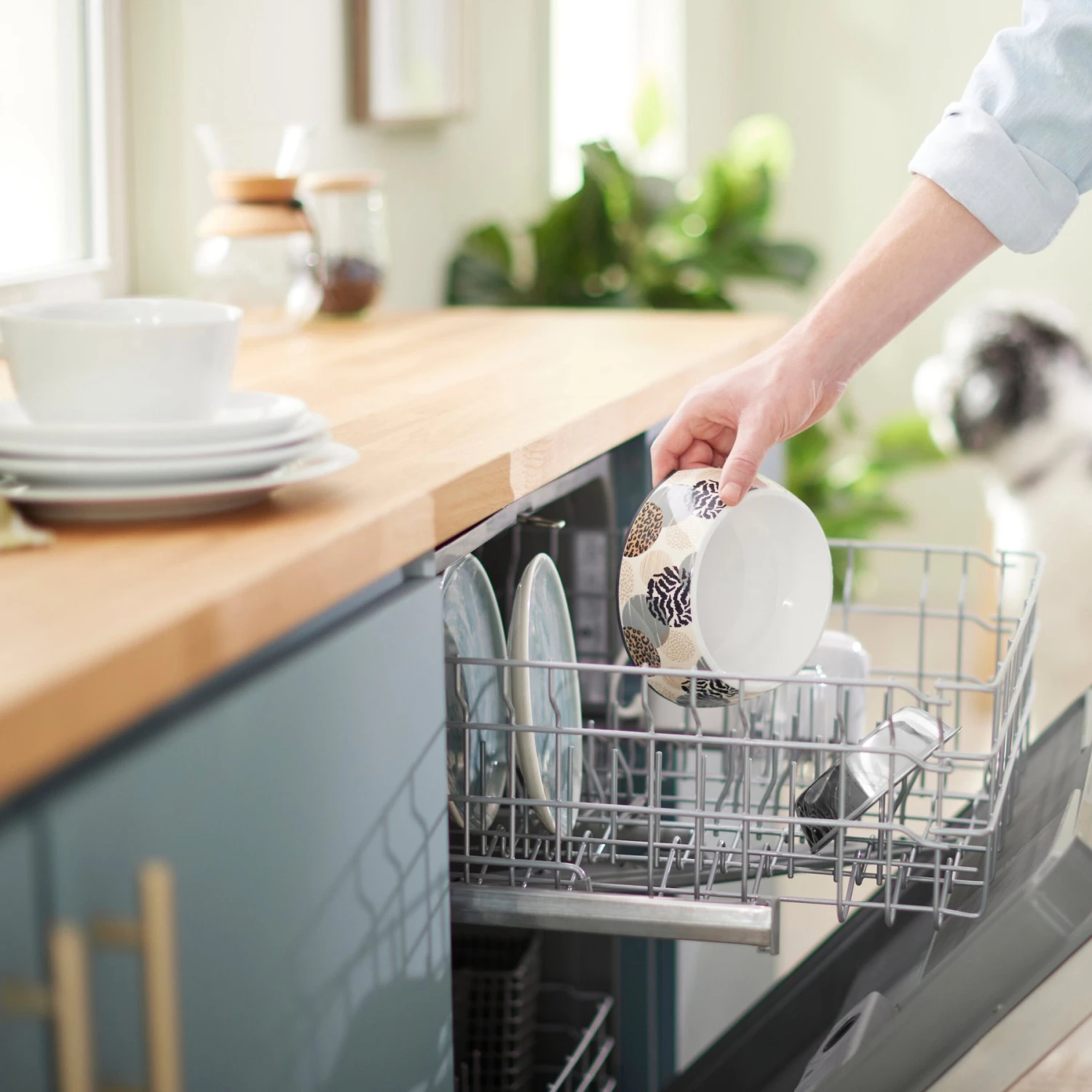 - The stainless-steel bowl easily comes out of the decorative base for cleaning.
